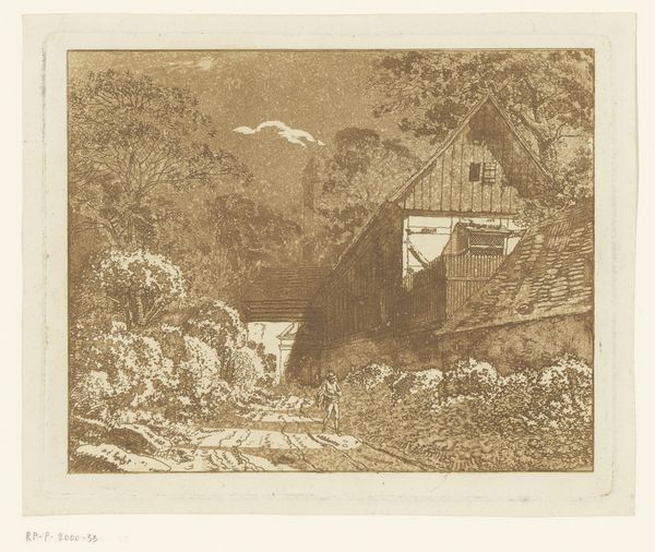 Curator: Here we have Célestin Nanteuil's "Bron bij Divonne", an engraving from 1856. Editor: It feels melancholic, almost… romantic in a mournful sense. The rapid water contrasts with the static figures dotted about, and it all feels very isolated despite those figures being present. Curator: Indeed. Nanteuil was working within a specific Romantic vision, one profoundly shaped by its socio-political era. Consider the rise of industrialization during that period. Landscapes like this one offered an idealized vision of nature, untouched by modern progress, yet inherently reshaped as a commodity through tourism. Editor: The figures really speak to this tension. Are they viewers of a natural spectacle, or are they complicit in its staging, their presence completing the idyllic scene? Who has access to these places, and how does that inform their reading of the landscape? Curator: Excellent questions! Think, too, of the burgeoning art market. Prints like these made picturesque scenes accessible to a wider public. One could possess a fragment of untamed nature within their own home, filtered through the artist's, and the publisher's, vision. Editor: So, it's a democratizing impulse mixed with a romanticizing and inevitably commercial gaze? I find myself wondering about the experience of those who couldn’t afford such art or access such scenes physically. Were they implicated in a visual economy that constantly rendered them absent? Curator: That’s exactly what I mean. The image invites reflection on these complexities. We can celebrate the Romantic’s sensitivity towards nature, whilst deconstructing who benefited, both materially and ideologically, from the way the natural world was presented at that time. Editor: Thinking about this piece helps to me realize that there isn’t a fixed universal meaning here. I believe, through an intersectional reading, this piece encourages us to continually re-evaluate what, whom, and how the narrative excludes or represents. Curator: It is, in effect, a document shaped by specific societal forces that we can still examine to create new perspectives today.
