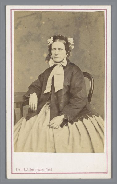 This is a photographic portrait of an unknown woman, made by Julius Ortgies Jr. in Bremen. The photograph is a calling card, a popular format in the 19th century, made through the relatively new technologies of photography that transformed portraiture. Photography automated image making, offering new levels of realism that painting struggled to achieve, but it also relied on skilled labor. Photographers needed chemical expertise and a keen eye for composition, developing an aesthetic unique to the photographic process. These images democratized portraiture, and it became accessible to a wider range of social classes, changing how people saw themselves and wanted to be seen. It's important to remember that photography also creates new industries, from manufacturing photographic plates to running studios. By considering both the technical process and the social context, we gain a richer understanding of this small but significant portrait.