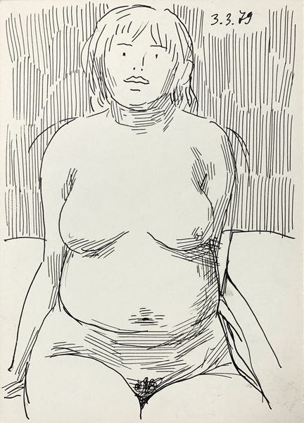 Hryhorii Havrylenko rendered this ink drawing of a nude woman in 1981. In the image, the model's gaze is directed downwards, a posture of introspection that reminds us of the classical motif of melancholia, a figure often depicted lost in thought. This downward gaze, seen across centuries from ancient sculptures to Renaissance paintings, captures a complex interplay of sorrow, contemplation, and creative inspiration. Consider, for instance, Albrecht Dürer's "Melancholia I," where the seated figure is surrounded by symbols of intellect and creativity, yet remains absorbed in a profound, unfathomable sadness. In Havrylenko's drawing, the woman's contemplative pose resonates with this tradition, evoking a sense of inner depth. Though the surrounding context differs, the psychological weight carried by the posture remains, engaging viewers on a subconscious level. It seems that the burden of reflection transcends time and cultural boundaries.