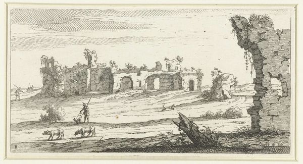 Esaias van de Velde made this small print of a round tower with a gate using etching, a printmaking process that allows for a remarkable amount of fine detail. The plate itself would have been made of copper. Etching relies on acid to bite into the metal, creating recessed lines that hold ink. The artist would apply a waxy ground, draw through it to expose the metal, and then immerse the plate in acid. This painstaking procedure, done in reverse, demanded immense technical skill. The resulting image bears the marks of this process, with a remarkable tonal range achieved through varying line weights and densities. Van de Velde's technical mastery elevates the humble materials of copper and acid into a work of art. The print also speaks to a growing market for landscapes among the rising Dutch merchant class, who celebrated both the natural world, and the skilled labour required to represent it. Ultimately, understanding the material and the making of this print helps us appreciate its unique status, both as a technical achievement and a cultural artifact.
