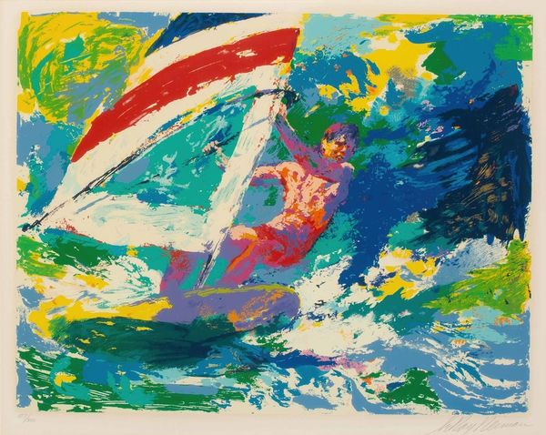 LeRoy Neiman’s "North Seas Sailing" is a riot of color committed to paper through the commercial process of serigraphy. The effect is a high-keyed image, full of energy and saturated hues. Neiman, an interesting figure, often took his subject matter from popular culture, particularly leisure activities and sporting events. "North Seas Sailing" typifies his obsession with the lifestyles of the rich and famous. The serigraphic process itself, a form of stenciling, allows for the layering of flat colors and graphic precision. As a printing method, it is well suited to Neiman's Pop sensibility. The thick impasto of silkscreen ink mimics the gestures of painting. The editioning of serigraphs allowed Neiman to commodify his art, making it available to a broad audience of collectors. So, the image, the process, and the distribution are all of a piece: this is a celebration of affluence, available for purchase. When we consider works of art, thinking about their mode of production, and the lifestyle they depict, allows for a richer understanding of the work and its cultural significance.