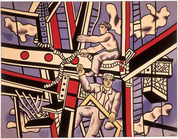 Curator: It feels like urban anxiety rendered in Pop Art colors. Chaotic, yet strangely ordered. Editor: And appropriately so, considering. What we have here is Gerard Fromanger’s “Bastille Flux,” painted in 2007. Look at the overlay of primary colours over the figures in the crosswalk: a seemingly spontaneous gesture, but what do the materials suggest? What sort of production values and artistic labor is on display? Curator: You’re right, that graphic simplicity belies its deeper roots. Fromanger was deeply involved in the 1968 Paris protests, and this feels like an echo of that era – the street as a site of political action, the individual lost in the crowd. He had developed "personnage-couleur", that could then be applied in works linked to specific political events. How are the dynamics between street and protest influencing his color palette and painting tools? Editor: I’m drawn to how the stark black-and-white architectural details contrast with the vibrant hues outlining the figures. There's something about the industrial feel of the line work against those handmade shapes. Does that division create a dynamic for you, or a challenge in deciphering Fromanger's approach? Curator: It certainly does create a tension, that is at once dynamic and representational of challenge, suggesting the individual is somewhat divorced from their surroundings even when moving through a shared civic space, separated. I'd even argue it underscores a certain alienation inherent in modern urban life, a common subject among his European peers as culture and society changes shape throughout the mid-late 20th Century and early 21st. Editor: So, you are alluding to how industrial painting processes themselves came into being – in the form of both labor and material inputs like commercial grade paint as they feed the conditions of everyday, modern life, which in return shapes and shifts the labor force itself. As well, Fromanger created those ‘personnage-couleur’ to then create life size stencils on the streets themselves; labor that can hardly be recuperated by commodity itself, or traditional art market venues. Curator: Precisely. And viewed through that lens, "Bastille Flux" ceases to be simply a visually striking composition. Editor: Absolutely. Examining its material construction opens up critical insight, a story in itself. Curator: Ultimately, it gives you a renewed sense of history. Editor: And reminds us of the critical role process and craft play in that unfolding story.