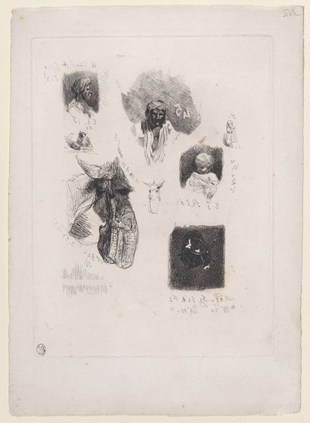 Curator: Welcome. Today, we are examining "Vijf dameskapsels," or "Five Ladies' Hairstyles," an etching by Daniel Nikolaus Chodowiecki from 1778. It’s currently held at the Rijksmuseum. Editor: Oh my, what a riot of styles! It feels almost like a cheeky caricature, but there's something fascinating about the detail. They are so elaborate. I'm drawn to the almost cartoonish absurdity of it all. Curator: Indeed. Chodowiecki was very interested in depicting the nuances of everyday life. This print showcases the evolving fashion of the late 18th century, particularly the Rococo obsession with ornate hairstyles. Editor: Obsession is right. Look at the one with the massive feathers – a complete statement of wealth and status. It screams excess at a time of rising social inequality, doesn’t it? Curator: That’s a key point. These extravagant hairstyles were undoubtedly status symbols. The higher the hair, the higher the status, you might say. It highlights the conspicuous consumption of the aristocracy, particularly in pre-Revolutionary France, where these styles originated and spread. Editor: And it was an almost performative way to consume and display status. How does something this outrageous even become a trend? Curator: Fashion, of course, is always influenced by socio-political forces. The French court, under Marie Antoinette, heavily influenced fashion trends throughout Europe. A print like this both documents and gently satirizes that influence. Think of this as an early form of social commentary through visual culture. Editor: I can’t help but consider how these hairstyles impacted women’s lives beyond being simple status symbols. How comfortable or practical were they? And at what cost were these trends normalized? Were there even political allegiances based on the specific forms one's hairstyle might take? It raises a question: What kind of societal power were women wielding through their choice of dress and hairstyle? Curator: Absolutely, it’s essential to view this beyond just aesthetics. Consider the labor involved. These hairstyles required hours of work by skilled hairdressers, which suggests the elaborate network of servitude underpinning aristocratic life. It’s a micro-history of economic disparity embedded in the lines of an etching. Editor: It's astounding how much social commentary is packed into what initially seems like a simple fashion plate. Makes you wonder, what absurdities are we normalizing today that future generations will find just as baffling? Curator: Indeed, it encourages reflection. And as an object produced through printmaking, it shows how new aesthetics in this era permeated throughout social strata. Editor: Food for thought – or maybe hairspray for thought, in this case!