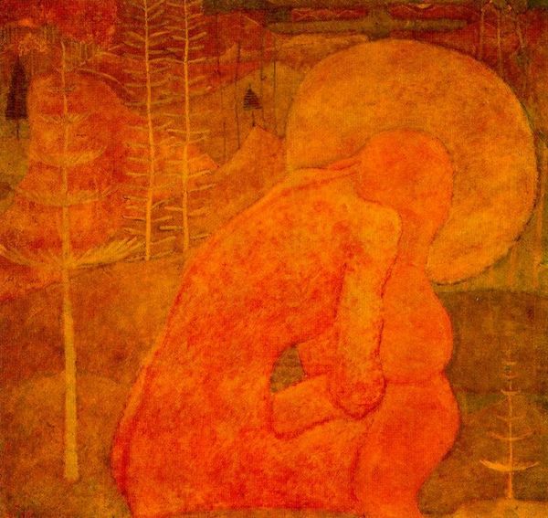 Paul Ranson made this untitled painting sometime in the late 19th century. At first glance, the artwork may seem like a simple nude study, but its symbolism and arrangement suggest a deeper cultural context. The image juxtaposes a melancholic nude figure with a collection of symbols, including Egyptian motifs and stylized flora. This combination reflects the late 19th-century fascination with the exotic and the occult, a period when artists sought to challenge academic art traditions by drawing inspiration from non-Western cultures and esoteric philosophies. France, the country in which the artwork was made, was at that time consolidating its colonial empire, and interest in far-off lands was high. Ranson was part of the Nabis, a group of Post-Impressionist avant-garde artists who were interested in symbolism and spiritualism. They were questioning the prevailing artistic norms and institutions of their time by incorporating mystical and decorative elements into their work. Art historians delve into such cultural and institutional contexts, consulting period sources and critical literature, to uncover the rich layers of meaning embedded in artworks like this.