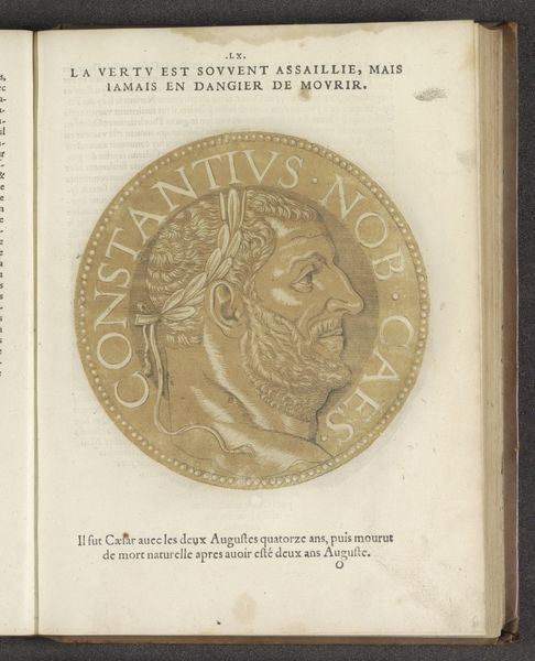 Curator: Look at this captivating engraving: "Portret van keizer Justinianus I," dating back to somewhere between 1557 and 1559, crafted by Joos Gietleughen. It's a fantastic example of portraiture influenced by Byzantine art during the medieval period. Editor: My first impression is of solemnity. The profile view, encased in a circular frame resembling a coin or medallion, feels weighty, like an emblem of power carefully preserved through time. Curator: It certainly speaks to the authority Justinian I held as the Byzantine Emperor. Consider how the print medium allowed for the widespread dissemination of his image and the projection of imperial power. The engraving, with its lines and shading, conveys a sense of his perceived wisdom and strength to a broad audience. Editor: Absolutely, and it makes me consider how such imagery functioned to legitimize power structures. The crown, the text encircling his portrait... It all serves to reinforce the idea of a divinely appointed ruler. I am struck by the deliberate act of constructing this identity within very specific political and social circumstances. The portrait’s visual language resonates with very clear messages. Curator: It is interesting to see how the engraver blends classical influences with contemporary artistic conventions. While rooted in Byzantine tradition, this rendering of Justinian clearly reflects the stylistic tendencies prevalent in the 16th century, indicative of the way historical figures are re-imagined in subsequent eras. Editor: Right, we have to consider the lens through which we're viewing Justinian here. This isn't a straightforward, objective portrayal but a constructed image, layered with the values and intentions of its creator and the socio-political landscape of the 16th century. It certainly makes us think about the use of art for political ends, something very relevant even today. Curator: Precisely, and by examining the conditions of this portrait's creation and reception, we can learn a great deal about the public role of art. Thank you for expanding this point so well. Editor: Thank you! Exploring those kinds of broader narratives provides deeper engagement, and reminds us to reflect on how historical representations resonate, even now.