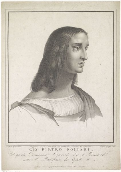 Pietro Peiroleri created this print, "Portrait of a Young Man, Possibly the Artist Raphael," in the late 18th or early 19th century. The work reflects the enduring legacy of Renaissance artists. Here, we see Peiroleri grapple with the construction of artistic identity. The portrait revives interest in Raphael. Portraying the artist with long hair and a soft cap, Peiroleri emphasizes Raphael’s artistic genius. But he also highlights the artist's humanity, presenting a figure that is both intellectual and sensual. The gaze is thoughtful, hinting at the emotional and intellectual depths of the artist. This image isn't just a depiction; it's an invitation to consider the role of the artist. How do artists see themselves, and how are they seen by others? How does society construct the image of the artist? The portrait encourages us to contemplate these questions.