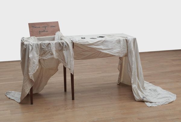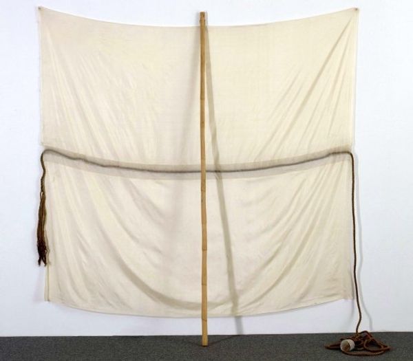 Robert Rauschenberg made this enigmatic construction, Franciscan II, with found materials and a muted palette. You might see artmaking as a conversation with the world, and Rauschenberg was always listening in. The piece merges painting and sculpture in a ghostly dance. The central drape, stained with the marks of time, falls like a shroud, anchored by a single point. To either side, appendages crafted from layered, textured materials reach out—gestures frozen in space. Look at the way the surfaces catch the light, revealing the history of their making. Rauschenberg's work anticipates a lot of later artists, like Gordon Matta-Clark. But unlike Matta-Clark, who makes dramatic interventions into architecture, Rauschenberg's gestures are gentle and almost melancholic. His work always embraces ambiguity, inviting us to bring our own stories and associations to the table. There's a quiet revolution in this approach—a refusal to be pinned down.