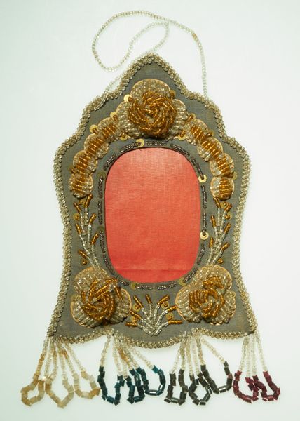 As photography became more accessible in the late 1800's, picture frame whimsies became desirable items of home décor. Often beaded with three-dimensional flowers and other motifs, picture frames illustrate the broad pallet artists employed to make these pieces. They fashioned patterns for designs and passed their templates along to younger artists in the family. Younger women and girls first learned how to bead the looped fringe and would later bead entire whimsies. By creating them in this way, Iroquois women insured the survival and growth of their artistic traditions.