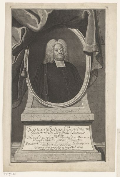 This is Christian Albrecht Wortmann’s ‘Portret van Christian Lehmann,’ created sometime between 1680 and 1760. This portrait immortalizes Lehmann in the visual language of power and intellect. The subject, Christian Lehmann, stands as a figure of authority, his gaze steady and assured. The trappings of his status – the scholarly robes, the meticulously styled wig, and the symbolic backdrop of books – speak to his position within the 18th-century social hierarchy. Lehmann was a prominent theologian and church leader, suggesting that this image served to reinforce his authority within his community. Consider, though, the subtle ways identity is constructed here. Lehmann's vestments denote a separation, a symbolic distancing from the everyday. The portrait operates within established conventions but consider the role that images play in either perpetuating or challenging societal norms. How might we, as viewers, engage with such historical representations, acknowledging their power, and limitations?