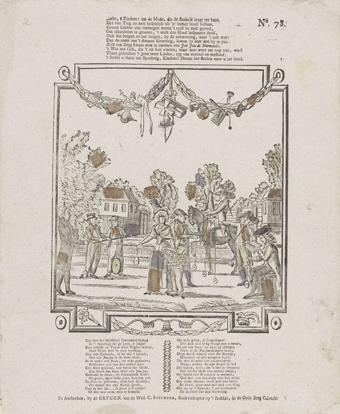 Curator: So, tell me your first impressions of this etching, "Lacht, ô kindren! om de mode, die de zotheid bragt ter baan" by Johan Noman, created sometime between 1806 and 1830. I see it's housed at the Rijksmuseum. Editor: It’s got this very satirical feel, like a comic strip almost, poking fun at... well, something! What do you see in this piece? Curator: This isn't just about pointing fingers at silliness. It is important to understand how such images reflect broader social tensions and evolving class dynamics of the time. These caricatures often served as tools for critiquing those in power or mocking emerging trends considered frivolous by some. Editor: So, it’s less about judging individuals and more about understanding social anxiety around changing trends? Curator: Precisely. Consider the Dutch context of the early 19th century. There were ongoing discussions on national identity after the Batavian Republic, evolving ideals of citizenship, shifts in economic structures— all of that. Now, how might these figures challenge the dominant cultural values, and for whom? Editor: Hmm… Perhaps the artist is taking aim at perceived social climbing, individuals who eagerly adopted the latest fads to appear more sophisticated? I guess that’s why they are presented so exaggerated and ridiculous. Curator: Exactly. It allows us to interrogate power structures. Does this critique extend to gender roles, or perhaps class disparities? What elements in the artwork, beyond the overt satire, might hint at deeper social commentary? Editor: This really shifts my understanding. Instead of a simple mockery, I can now look for layers of meaning, questioning what these trends represented, who was being excluded, and why these specific "follies" were being targeted. Curator: It transforms it into an active dialogue with history! Editor: Definitely gives you a lot to consider beyond just the humour.