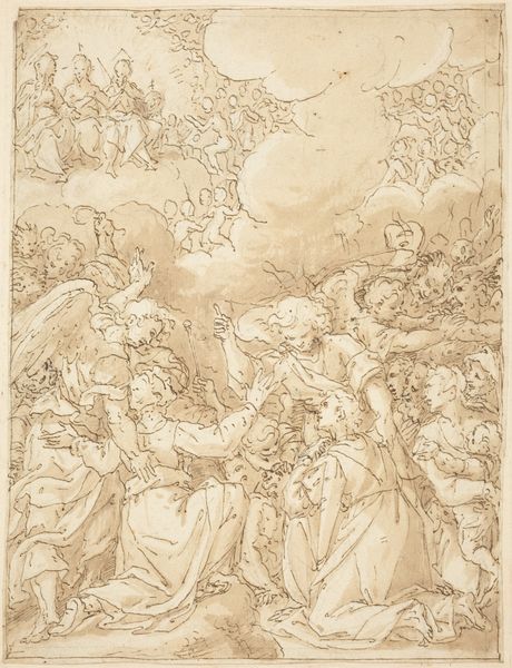 Francesco Fontebasso sketched this Holy Family with pen in the 18th century, placing them beneath a palm tree. The palm, a symbol of victory and eternal life in Roman times, was adopted by Christianity to signify triumph over death and is often associated with the Virgin Mary. We can observe the motif of the palm in, for instance, Titian’s “Annunciation,” where it similarly conveys divine favor. Yet, the palm’s journey goes further back, appearing in ancient Near Eastern art, symbolizing fertility and abundance. Its endurance speaks to our innate longing for life and renewal, a psychological resonance that transcends epochs. The cyclical reappearance of such symbols shows how the human psyche continually returns to certain fundamental themes, reshaping them yet preserving their core essence. The image’s emotional power lies in its ability to tap into these deep-seated cultural memories, engaging viewers across time through shared symbolic language.