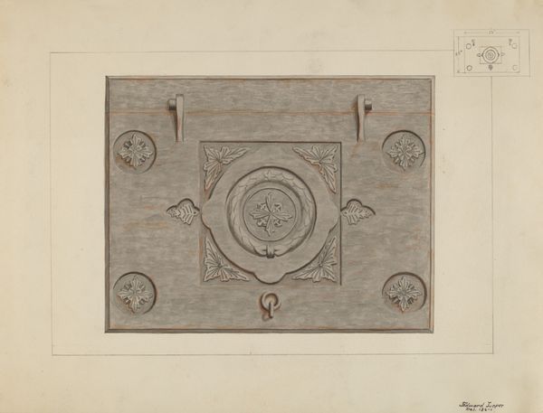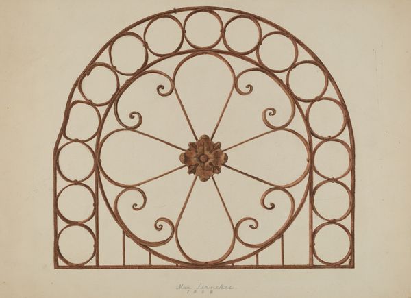 Raymond Neumann made this drawing of a "Balcony Railing with Cast Rosette" with what looks like graphite on paper. It’s kind of technical, but softened by the artist’s hand. I like how the repeated lines and shapes give it this airy, open feel. You can really see the texture of the graphite, especially around the rosette in the center. It's smudgy and soft, almost like he’s trying to capture the way light hits the metal. The rosette is where the artist’s touch is most evident. It’s not just a flat, geometric shape; it has a subtle depth and a kind of delicate beauty. The drawing reminds me of those architectural renderings you see in old books, but with a human quality that’s really charming. It’s like a conversation between the artist, the materials, and the object. There’s no real right or wrong way to look at it, just an invitation to slow down and appreciate the artist's eye.