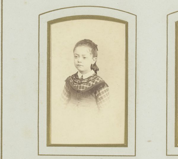 Curator: This is "Portret van een jonge vrouw," a photograph created between 1880 and 1900 by Photographie Turque, likely an albumen or gelatin-silver print. Editor: My first impression is one of quiet dignity. The oval format and muted tones lend it a classic, almost melancholic air. Curator: Precisely. These studio portraits served as a means of projecting respectability, particularly for women navigating societal constraints. Consider how posture, attire, and even the careful retouching served to construct a particular image of femininity. Editor: I’m struck by the subject's gaze; she’s looking slightly off to the side, which makes me wonder what she’s thinking about. It lends a certain ambiguity to her character that contrasts with the stiff formality. Curator: Absolutely, that gaze, combined with her modest attire and jewelry, hints at her social class and status within the community. We should also consider the agency she had, or did not have, in this representation. To what degree could she subvert the dominant ideals? Editor: The lace collar and the brooch draw my eye. These objects aren’t just decorative; they’re emblems, signifiers that communicated wealth and propriety. I see how they weave together visual elements to reinforce the themes of the image. Curator: I see the lace as almost restrictive, embodying the era’s expectation of feminine domesticity, in stark contrast to contemporary expectations of freedom of expression. Even the 'toned paper' feels complicit in constructing a particular kind of ‘vintage’ authenticity. Editor: Yet, at the same time, that carefully crafted presentation, with all those small, considered symbols, ensured that a part of her – her essence, perhaps – could be preserved across generations. A symbol of resilience, if you will. Curator: Perhaps. Considering this, I am compelled to look for those pockets of subversion and hints of rebellion in otherwise formal imagery, a practice of critique that transcends eras and ideologies. Editor: For me, thinking about those symbols—how the woman and elements around her consciously or unconsciously perpetuated specific meaning—reveals our shared, timeless need to be understood, be remembered, be visible.