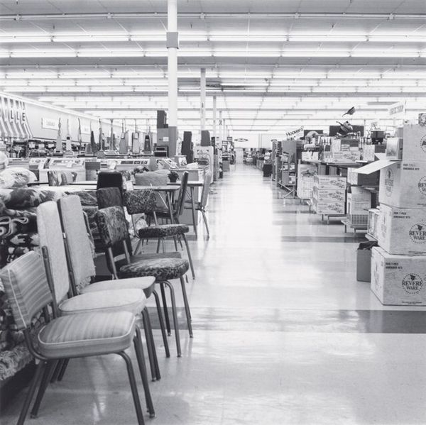 Editor: So, this is Elaine Mayes' "Electronics Assembly, Grumman Aerospace." Looking at it, I'm struck by the sheer scale of the room and the repetitive nature of the work. It feels almost dystopian. What do you see in this piece? Curator: It's a fascinating glimpse into a specific moment, isn’t it? I find myself drawn to the individual humanity within the grid. These people, each a universe of thoughts and feelings, are contributing to something larger, something perhaps they don’t even fully grasp. Editor: Do you think Mayes was trying to make a statement about the nature of labor? Curator: Perhaps. Or maybe she was simply capturing the world as she saw it. It’s easy to project our own anxieties about technology and automation onto this image, but maybe it’s more about the quiet dignity of everyday work. What do you think? Editor: I'm still processing it, but I appreciate that take – finding the humanity in the machine. Curator: Exactly, and that's the joy of art, isn't it? Always something new to discover.