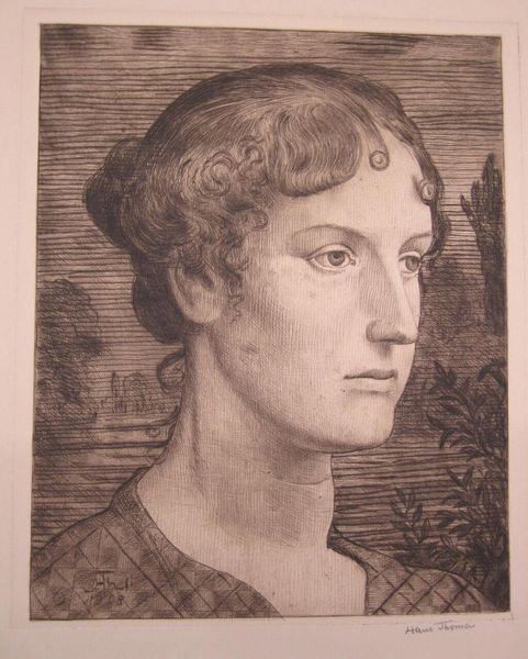 Curator: This is Vittore Carpaccio’s “Portrait of a Lady,” painted around 1485. Carpaccio was, of course, a master of the Venetian Renaissance. Editor: It's immediately striking how serene she appears, isn't it? The composition emphasizes verticality, lending the portrait an air of reserved elegance, despite the absence of vivid color. The gray hue also reinforces the austere, subdued effect of the entire picture. Curator: That perceived austerity can also be seen as strength, wouldn't you agree? I find the portrait incredibly interesting when contextualized with the gender dynamics of the time. Noble women of the Renaissance period, especially those immortalized in portraits like this, were often seen as symbols of their families’ power and prestige. They were essentially trophies who secured family name and lineage through arranged marriages. The neutral face, then, takes on an added layer of depth. Editor: I appreciate your interpretation, and yet my eye goes straight to the detail of the pearl necklace. See how it almost perfectly frames the delicate slope of her neck? The light seems to catch each tiny sphere—almost echoing her refined complexion. The formal, repetitive composition establishes her image as that of someone of high status and importance. Curator: It’s fascinating to note how Carpaccio seems to both confirm and question patriarchal norms in his portrait. He shows the woman in expensive attire and in a composed state befitting her social standing while also allowing a bit of agency to be expressed through her gaze which drifts toward the side—suggesting she may be interested in things beyond this painting. The context informs how we interpret not only the image, but our relationship with its historical implications. Editor: I think, though, we also need to appreciate the tempera as medium—a bold move when oil was rapidly taking hold in that era! The fine application allowed for precise detailing. What this gives us is a picture of reserved elegance that relies on subtle cues within its pictorial design. It creates an echo effect as if whispering across generations. Curator: I agree; examining the portrait through both the lens of its form and sociopolitical conditions enables a fuller, richer, more dynamic understanding. It’s through dialogues like this that art's capacity for insight is unlocked! Editor: Absolutely. There are formal elements here that resonate long beyond any specific history, continuing to speak to us.