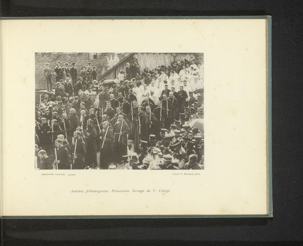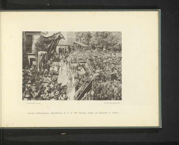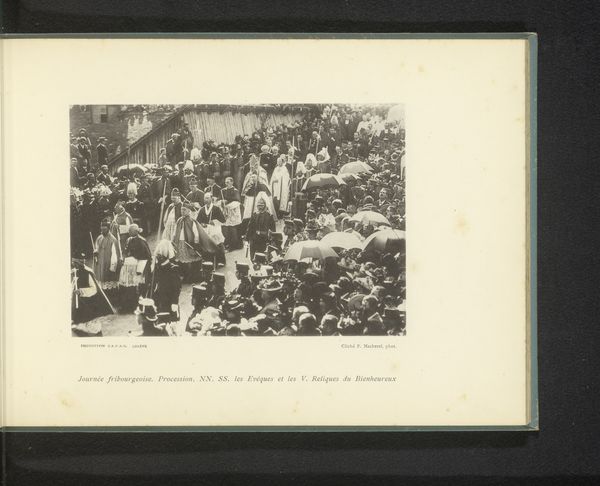 Prosper Macherel captured this image of a procession in Fribourg, likely commemorating the death of Petrus Canisius, sometime between 1861 and 1936. The photograph offers a glimpse into the intricate performance of cultural and religious identity in early 20th-century Switzerland. Notice the women in traditional attire, their clothing is a strong visual statement about regional identity and cultural pride. Religious processions like this one are more than just spiritual acts; they are public assertions of communal identity and shared history. What does it mean to publicly perform one’s identity through traditional dress? The sea of similar outfits may offer a sense of belonging, but it also raises questions about individuality. Consider how the act of photographing the procession further shapes its meaning, immortalizing a specific version of regional and religious identity for posterity. This image becomes part of a larger visual archive, influencing how future generations perceive this community and its traditions.