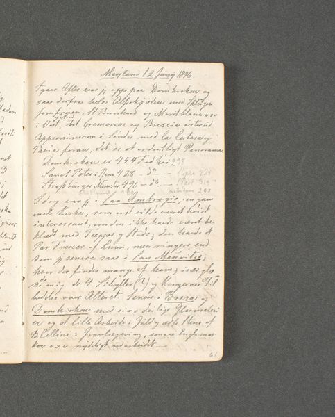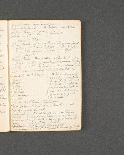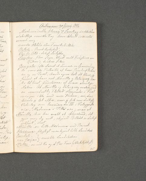Curator: Here we have a fascinating piece: a page from Johan Thomas Lundbye’s travel journal, titled "Rejsedagbog. Antwerpen og Gent," created in 1846. It's a beautiful example of Romantic era travel documentation. Editor: My first impression is one of intimacy and almost hushed curiosity. The script is dense, the paper aged—it feels like uncovering someone’s private thoughts, handwritten observations from a distant past. Curator: Exactly! Lundbye was meticulous, recording not only visual sketches, but also detailed notes. He used pen and ink on paper to document his travels, in the traditional spirit of the time, when painting outdoors wasn’t possible. It highlights the importance of travel journals to the cultural development of Romantic painters and draftsmen, who later integrated notes in their works. Editor: I'm drawn to how it reflects a very particular kind of 19th-century travel—scholarly, reflective, more concerned with internal experience than external spectacle. It makes me think about access, who could afford such journeys, and whose experiences are being centered. Curator: Absolutely. The journal provides insight into Lundbye's personal and artistic development, allowing us to explore the cultural lens through which he viewed the world. It allows for speculation about his personal experiences while engaging with major sociopolitical moments happening in Europe, as his writings imply in terms of prices for accomodation or commenting on other artists’ painting techniques. Editor: Thinking about that personal lens makes me wonder about the potential biases or blind spots present in his observations, particularly regarding the communities and cultures he encountered as a visitor. How much did he consider those social systems? Curator: It’s a pertinent point. Understanding the societal context in which Lundbye operated helps us interpret his work, accounting for the prevailing cultural perspectives that shaped his views and, thus, the narrative conveyed through his artwork. We get a chance to better read and contextualize the history through the lens of personal narratives, no matter their own embedded issues and historical problematics. Editor: Ultimately, these pages serve as a powerful reminder of art’s intricate ties to socio-political landscapes. Curator: Yes, the interplay between the personal and the socio-historical adds layers of meaning and insight to our understanding.