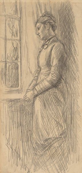 Georges Seurat created 'Nurse with a Child’s Carriage' using conté crayon, a medium that allowed for nuanced gradations of tone. The drawing emerges from the social fabric of 19th-century France, where the role of women, particularly working-class women, was undergoing redefinition. Here, the faceless figure of the nurse is central. Her identity is subsumed by her occupation, and she becomes a silhouette, a representation of her societal role. We might consider the implications of her anonymity: is Seurat highlighting her invisibility or perhaps universalizing her experience? The child’s carriage, an emblem of bourgeois life, sets the scene, alluding to the class dynamics at play. The nurse's labor enables the freedom and leisure of others. Seurat’s choice to depict the scene in monochrome adds to the emotional weight of the piece, evoking the emotional and economic realities of working women during this time. It encourages a meditation on visibility, labor, and social class.