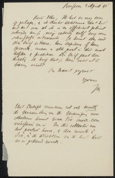 Curator: Here we have "Brief aan August Allebé," a drawing rendered in pen and ink on paper by Jac van Looij, dating from 1865 to 1927. The artwork showcases hand-lettering, reminiscent of a personal sketchbook page. Editor: My initial response is one of intimacy. The script appears informal and personal, offering an insight into the artist's daily thoughts and affairs, like glimpsing a page ripped from their private notebook. Curator: Indeed, its materiality emphasizes that intimacy. The labor is evident: each letter meticulously crafted by hand, the texture of the ink on the paper. We should not forget that the work resides somewhere between high art and what we’d categorize today as graphic design or simply communication. Editor: Agreed, and focusing on purely visual aspects, the composition feels dense yet rhythmic. The consistent line weight and tightly packed text create a strong textural pattern that fills the page, and my eyes are constantly engaged, tracing the lines and forms. It draws me into an attentive mode of observation. Curator: The creation of hand-drawn type connects to societal and cultural currents too. Think about literacy, education, and the role of correspondence during that era. Who was August Allebé to van Looij? What did letter-writing signify in the late 19th and early 20th centuries, compared to today’s instant messaging? These are all questions that examining its process, means of production, and the immediate social context surrounding the artwork enable. Editor: From my vantage, it's hard not to see a deeper resonance, too. Van Looij’s skilled command of line and form evokes a kind of contained energy. It feels as if the constraints of the format actually amplify a distinct sense of his persona, preserved through time in these swirling inked marks. Curator: By centering process and period, it permits us to rethink this artwork as something embedded in a precise moment in time – and not solely as an example of virtuoso penmanship by an individual artist. Editor: Precisely, it’s not simply writing; it is an embodied expression through visible and visceral means. Thank you. I did enjoy discovering van Looij’s personal artistry as evident here.