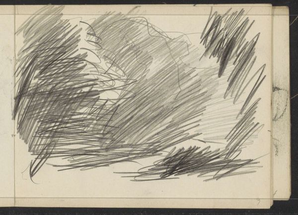 Editor: Here we have Anton Mauve's "Herder met een kudde schapen," dating from around 1876 to 1879, created using pencil on paper. It's quite a minimal sketch, almost ephemeral. What's your interpretation? Curator: Looking at the piece, it seems worthwhile to consider Mauve's material reality and engagement with labor. The pencil, a readily available tool, connects him directly to the working classes often depicted in Realist art. How might this simple drawing challenge academic notions of art production that value more "refined" mediums? Editor: That's a compelling point. The immediacy of the pencil sketch emphasizes the *process* rather than a finished product. Could it be read as a commentary on the daily labor of both the shepherd and the artist themselves? Curator: Precisely! The visible process here emphasizes labor. Also, it is vital to acknowledge the role of patronage and the art market in shaping Mauve's production, as these influenced his choice of subject matter and his stylistic development. Do you notice how the marks themselves suggest speed and efficiency, reflecting perhaps the demands of a burgeoning art market? Editor: I see what you mean. The drawing feels less like a carefully crafted masterpiece and more like a record of a fleeting moment in the life of a worker. Curator: Yes! Also, how might Mauve’s depiction of labor here differ from more idealized or romanticized portrayals of rural life common at that time? Editor: Well, there's no glorification here, just a raw, honest depiction of the mundane reality of shepherding. I hadn't thought about the choice of materials as integral to its message. Curator: Examining materiality and means of production reveals hidden layers of meaning within seemingly simple artwork, shifting the attention towards socio-economic relations of labor and production. Editor: Absolutely! I appreciate your insights – it completely shifted my perspective on this piece!