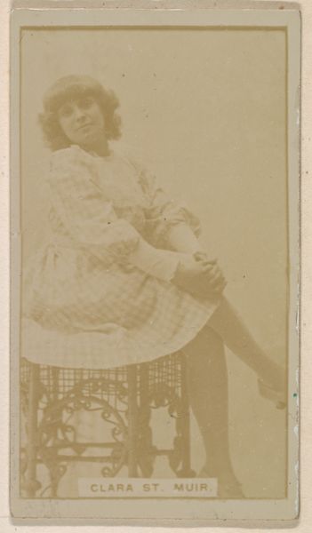 Curator: This albumen print from around 1890 is titled "Clara Thropp, from the Actresses series," produced by Kinney Brothers to advertise Sweet Caporal Cigarettes. The Met possesses a full set. Editor: The tones feel antiquated, almost dreamlike. It’s quite formal, yet something about the actress's pose has a playful, approachable quality. The lighting and her expression gives an intimate, yet constructed impression. Curator: The “Actresses Series” tapped into a popular fascination with theatrical figures, immortalizing them through readily available images, aligning celebrity with brand recognition. There’s also an element of Japonisme, quite common then, noticeable in the flattening of the picture plane and the emphasis on decorative elements like the hat. Editor: Knowing it was intended for mass production sheds light on how this photographic object was meant to be circulated and consumed. Think about the materials - the albumen printing process was pretty labor-intensive, even with industrialized photographic studios. All that albumen comes from eggs... a thought that somewhat removes the romanticization of early photography. It raises questions of consumption, waste, and the hidden processes involved in creating such a widely distributed commercial item. Curator: These actresses gained visual currency beyond the stage, appearing everywhere, their images shaping cultural perceptions. Clara's gaze, the way she’s framed... It contributes to this collective memory of idealized beauty, of a feminine archetype reinforced by commerce. Her positioning as a purchasable image—integrated with the tobacco—created a lasting legacy of cultural significance. Editor: Exactly. The materiality of the cigarette card—the paper stock, the ink, the printing techniques—connects directly to the labor practices and industrial infrastructure of the time. Considering how many of these cards might have ended up discarded—trashed after the cigarettes were smoked— also makes me think of ephemerality and mass culture, or how fleeting are perceptions of beauty and desire. Curator: It’s a curious reminder that images designed to be disposable can carry so much encoded social data. Editor: Definitely makes me wonder what will survive from our age.