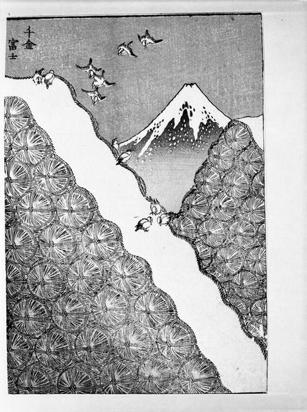 Editor: Here we have Qi Baishi's "Homes," a captivating ink painting on paper from 1926. The sweeping mountains and lonely dwelling evoke such a profound sense of serenity. What do you see in this piece? Curator: The visual weight of those mountains, doesn't it strike you as almost… parental? The home nestled at its base feels intrinsically protected, evoking that archetypal image of safety. The blank circle at the top is equally loaded: is it a sun, or a moon? Life-giving or quietly reflective? The symbolism in these traditional landscapes pulls heavily from cultural memory. Editor: That's fascinating! The ambiguity of the circle as both sun and moon—does that point to a cyclical nature of home and belonging? Curator: Precisely! The interplay of light and shadow isn't merely aesthetic here; it is deeply rooted in the continuous rhythm of existence, a continuous return. Even the style contributes. What might those bold, deliberate brushstrokes signify? Editor: Perhaps the permanence of home, the unwavering nature of family? Curator: Possibly. Or maybe the individual's capacity for inner strength found when returning home. It’s not merely about the physical structure. The imagery taps into a deeper, almost Jungian sense of refuge. Editor: It’s amazing how a seemingly simple landscape can hold such complex meaning. It has really given me a fresh lens to view traditional artwork. Curator: Exactly! And it is precisely these visual cues and historical threads that weave into the experience and interpretation of a home across generations.
