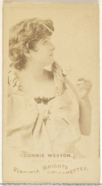 This small chromolithograph, made for Duke brand cigarettes, is part of a series called "Floral Beauties and Language of Flowers." Created at a time when consumer culture was rapidly expanding, it reflects a Victorian fascination with assigning symbolic meanings to flowers. The "tea rose" here signifies jealousy, a charged emotion often associated with women in the 19th century. The image presents us with a seemingly demure woman, adorned with pearls, her gaze averted. But is she demure, or is she masking a more complex interior life? The card speaks to how women's emotions were both romanticized and constrained by societal expectations. The language of flowers offered a veiled way to express feelings that were otherwise suppressed. This seemingly innocuous advertisement reveals a culture grappling with female identity, desire, and the unspoken tensions simmering beneath the surface of polite society. In our own time, it asks us to consider the ways that these representations continue to shape our understanding of gender and emotion.