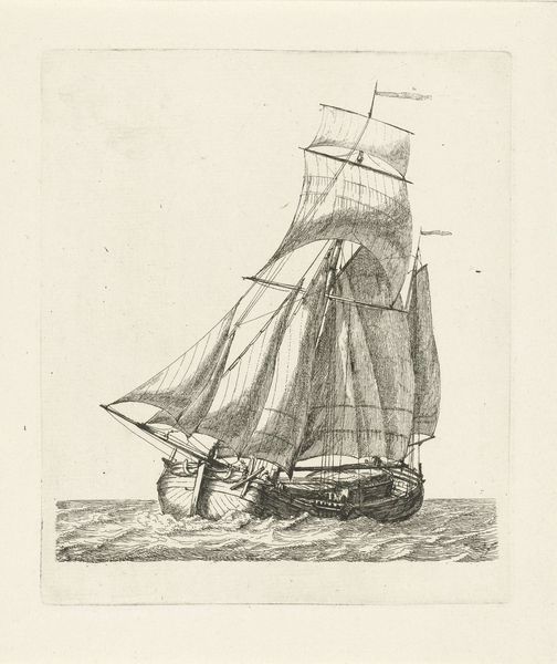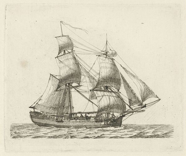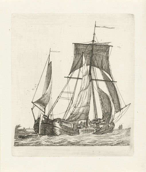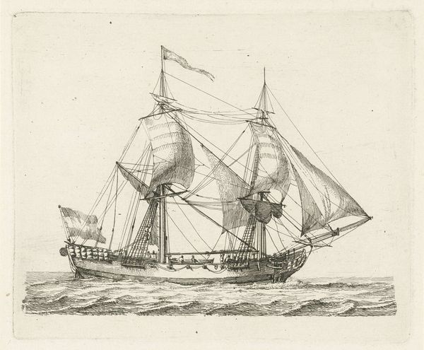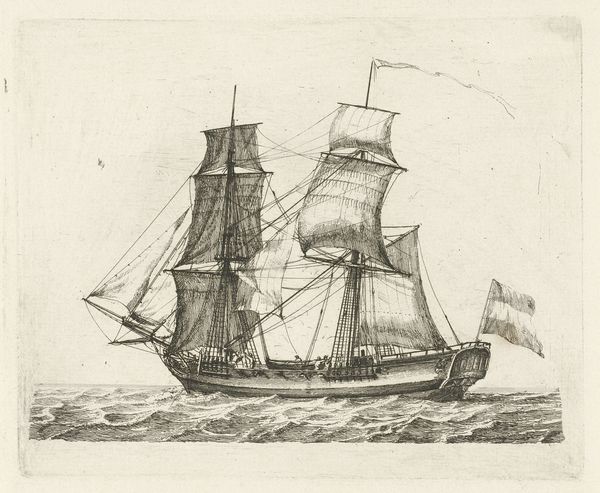 Gerrit Groenewegen made this print of a 'Tweemaster met sloep aan boord' – that is, a two-masted ship with a sloop on board – sometime in the late 18th or early 19th century. Groenewegen worked in etching, an intaglio printmaking technique. He would have coated a copper plate with a waxy ground, then drawn through it with a needle to expose the metal. The plate was then immersed in acid, which bit into the exposed lines, creating grooves. Ink was then applied into the recesses, and the surface wiped clean. Finally, the image was transferred to paper under great pressure. Consider all the skill involved. Not only the hand-eye coordination to create such a finely detailed image, but also the etcher’s knowledge of chemistry and mechanics. The print is a beautiful thing, but it also speaks to the labor that went into its making – and of course, the labor of the sailors who actually sailed these ships. Appreciating the craft involved helps us understand the image more fully.