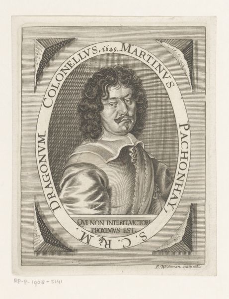 Editor: This engraving from 1623 depicts Giovanni Francesco Barbieri, or Guercino, made by Ottavio Leoni. It's quite formal, yet something about the direct gaze is arresting. What do you see in this piece? Curator: More than just a likeness, this portrait becomes a fascinating document of artistic identity in the Baroque era. Leoni, himself an artist, isn't merely representing Guercino; he's participating in the construction of his image as a ‘continuous painter’, as indicated by the text inscribed. Think about the social currency that artists held during this period and how printmaking facilitated the dissemination of their fame. Who was this image for? What purpose did it serve? Editor: So it’s more about establishing Guercino’s reputation than capturing his appearance? Curator: It’s both, and more. It situates him within a network of artistic exchange and patronage, visually asserting his importance to potential clients and fellow artists. The controlled lines of the engraving and the detail in his clothing speaks to class and authority, power dynamics embedded within the image itself. Editor: It’s like visual propaganda in a way? Curator: Exactly! It’s a calculated presentation meant to shape how Guercino and artists are viewed. Examining the composition, the sharp lines defining his face, the deliberate gaze; all these elements converge to portray an artist who is both talented and of importance. It prompts us to question the role of artists and their image within a social framework. Editor: I never thought about a portrait doing so much "work." Thank you! Curator: Indeed. And consider that work in the context of the complex social milieu of 17th-century Italy. Much to ponder!