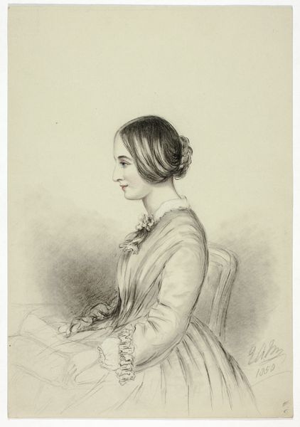 Curator: I’m immediately struck by the delicacy of this work. It seems so intimate. Editor: Indeed. We’re looking at "Portret van Sophie van Württemberg," a pencil drawing likely executed between 1835 and 1871 by Jean Baptiste Alfred Cornilliet. It’s part of the Rijksmuseum's collection. Curator: Pencil, you say? The fineness of the lines creates a captivating texture across the figure. It speaks to a certain material simplicity, but the elaborate details in her shawl and hair demonstrate skillful labor. This reflects both the availability of such a common tool and the meticulous dedication of the artist. What was pencil drawing’s function within the spectrum of artistic production at this time? Editor: Portraiture played a vital role in defining social status and commemoration for elite circles. Displayed prominently in domestic spaces, drawings like these reinforced the subject’s position within a particular societal hierarchy and shaped familial memory. Notice, though, the subdued, almost melancholic quality of her expression— how might we read this within the context of societal expectations and personal representation at the time? Curator: I think it underscores how even within portraiture conventions, material limitations can express something complex. Graphite, mass-produced but deployed here so elegantly, reflects the evolving relationship between artistry and industrial possibility. This seemingly straightforward depiction prompts us to interrogate the complex matrix of production that constitutes this piece. Editor: Certainly. The act of portraiture during this period, academic in its nature, reinforced existing social hierarchies by representing individuals from privileged backgrounds within carefully crafted narratives of idealised identity. Curator: Looking closer at the texture of the shawl, the rendering is so life-like I want to run my hand across it. Editor: Right? That invites consideration. So much is coded in the presentation of an artwork like this. It is not only the representation, but also a window into the culture that produced and consumed such an image. Curator: This deep dive really makes you consider the portrait's complex existence. It leaves me considering all the artistic processes and economic exchanges happening right under the surface. Editor: Exactly. Let's carry this thread with us as we continue to wander the museum.