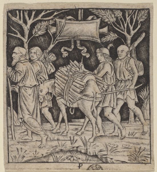 This is an anonymous woodcut of "The Adoration of the Magi" in which the Holy Family is visited by three wise men bearing gifts. Notice how line is employed to define every aspect of the image. The composition is organized by a series of horizontal and vertical lines giving the work structure, while diagonal lines introduce an element of dynamic movement. The image demonstrates a complex arrangement of figures and objects. The artist skillfully uses contrasting textures – from the smooth robes of the figures to the rugged landscape. This is an organized space but the perspective appears skewed, challenging the viewer's sense of spatial relationships. Consider how this reflects a broader artistic and philosophical concern. The artist’s creation challenges conventional representation. This artwork offers an opportunity to reflect on how artists destabilize established meanings through form and composition.