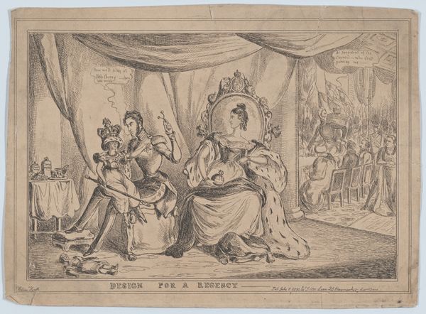 Johan Michaël Schmidt Crans created this print in 1860 as a commentary on A.C. Kruseman's book, 'Historical Women.' The cartoon offers a glimpse into the cultural and intellectual debates around history, gender, and national identity in the Netherlands. Here, Kruseman, guided by Clio, the muse of history, is confronted with the very women he has written about, figures who seem to be emerging from the depths of history to challenge his interpretation. The print uses the visual language of caricature to critique Kruseman's historical work. Consider how the artist uses exaggeration and symbolism, and how the choice to depict historical figures as specters reflects a particular view of history. Understanding this image requires that we delve into the contemporary reception of Kruseman's book and the broader context of historical writing in the Netherlands. This print underscores the importance of understanding the social conditions that shape artistic production and reception.