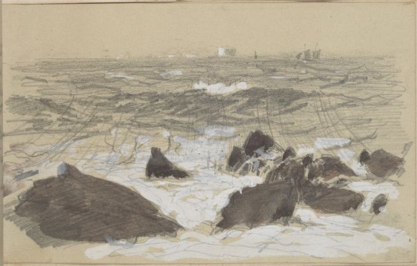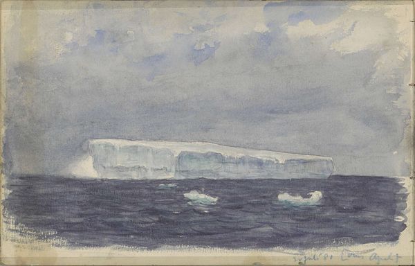 Editor: This watercolor, "Gezicht op de Barentszzee met ijsbergen," or "View of the Barents Sea with Icebergs," created around 1880 by Louis Apol, captures such a serene yet desolate scene. The muted blues and grays really give off this quiet, almost melancholic feel. I'm curious, what do you see in this piece? Curator: Well, first off, the way Apol handles watercolor is just, chef’s kiss! It's not just a pretty picture, though; it’s a journey into the artist's soul. Think about the Romantic era, its fascination with nature’s power and sublimity… it was all about feeling dwarfed by the grandeur of the world. Don’t you find the iceberg formations a bit… ominous, even poetic? Like nature’s sculptures? Editor: They definitely have this haunting presence to them, yeah. I guess I was just focusing on the overall calm, but there is something formidable about them rising out of the water. What's interesting is, it makes me think of how much these landscapes have changed since then... Curator: Precisely! And it really draws us to ponder on our impact, doesn't it? Imagine Apol standing there, in that frigid landscape, capturing the scene... and then picture the scene today. Melancholy indeed. It whispers of both beauty and loss, doesn’t it? Editor: It really does. I came in thinking about its calming aesthetic, but now I’m seeing it as this… subtle commentary. I think it’s a little haunting in a good way. I might need to sit with this for a while longer. Curator: That's the magic, isn't it? An artwork keeps speaking, if you listen.