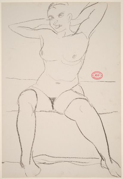 Editor: This is an untitled ink drawing by Richard Diebenkorn, created sometime between 1955 and 1967. It depicts two female nudes reclining together. What strikes me most is how raw and unfinished it feels, like a fleeting glimpse of a private moment. How do you read the intimacy here? Curator: Intimacy is a fascinating word choice. For me, these figures evoke a feeling of stillness and inward reflection. Diebenkorn often stripped away the superfluous, leaving behind the essence of form and emotion. Notice how the line work, though minimal, suggests weight, volume, and, yes, a kind of quiet connection. Do you see how the positioning almost implies a kind of sheltering? Editor: I see it now. There's something very gentle about how one figure rests against the other. The spare lines create this vulnerable, open atmosphere, right? Curator: Exactly! It’s almost as though the unfinished quality invites us, the viewers, to complete the scene with our own projections and feelings. It's as much about what isn’t there as what is. Do you get a sense of classical poses refracted through a very personal lens? Editor: I hadn't thought of that, but yes! There's definitely a classicism, like echoes of Matisse, or even Renoir. Something very modern refracted with that old sensibility. That's amazing. Thanks! Curator: My pleasure! Art is just that, it asks questions about how our senses meet the moment. What we’ve found is more than brushstrokes, that's a relationship between feeling and insight. Isn’t it great how a simple drawing can stir up so much?