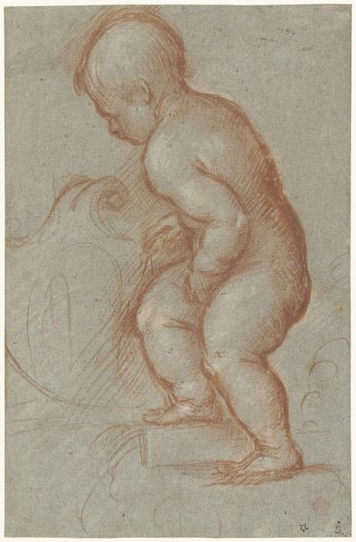 Jean-Antoine Watteau sketched this reclining nude figure in sanguine chalk, a medium prized for its warm, flesh-like tones, during the early 18th century. Watteau lived during the transition from the opulence of Louis XIV's reign to the more intimate and sensual aesthetic of the Regency. While Watteau's social mobility allowed him access to aristocratic circles, his art often depicted figures in moments of leisure and reverie, hinting at deeper emotional complexities. Nudity in art has historically been fraught with issues of gender and power, often objectifying the female form for a male gaze. However, Watteau’s choice to depict this figure with a sense of introspection allows the viewer to develop a more empathetic reading. The ambiguity inherent in the figure's posture invites us to consider the societal expectations placed upon bodies, then and now. Does this depiction challenge or reinforce traditional representations of the nude, and what does it evoke in us today?
