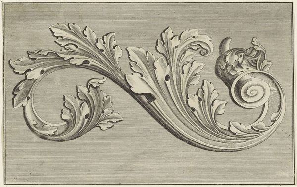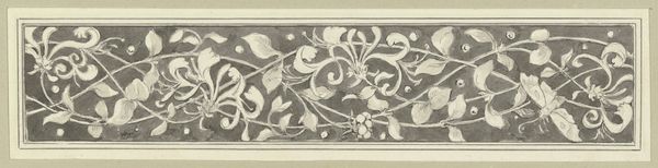 This ornament, ‘Bladranken, ontspruitend in het midden’, was drawn by an anonymous artist, using graphite. The artist skillfully used graphite to render the texture and form of leaves and vines. The precision of the drawing highlights the artist's attention to detail, especially in the small size of the artwork. It is reminiscent of block-printing, a popular means of mass-producing ornaments. The contrast between the dark background and light foliage gives the ornament a sense of depth and dimensionality, with the foliage appearing to emerge from the shadows. The flowing lines and organic shapes evoke a sense of natural growth and movement, creating a dynamic and visually appealing composition. Its design suggests that this ornament could have served as a source of inspiration for other kinds of creative practices and aesthetics, such as architecture or furniture. Ultimately, by appreciating the materials, techniques, and cultural influences, we can better understand the significance of such a piece.