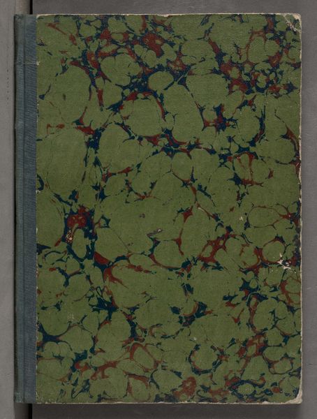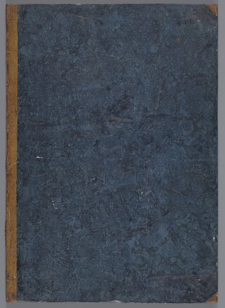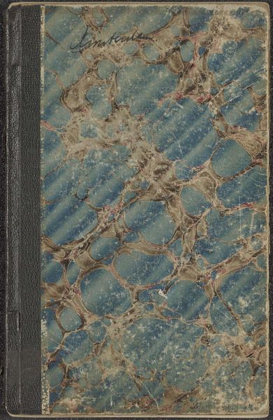Editor: We're looking at "Skizzenbuch," a sketchbook from 1840 by Ludwig Metz. It uses mixed media including ink and drawing. The cover has an interesting marbled pattern that makes it feel almost organic. What stands out to you about it? Curator: The cover’s intricate patterning immediately commands attention. Its tessellated forms create an arresting visual texture, don't you think? Editor: Yes, absolutely! The interplay of the dark blues and lighter greens definitely makes it feel very tactile, as if you could feel the pattern under your fingertips. Curator: Indeed. Notice how the seemingly random distribution of these cellular shapes creates a field that is simultaneously ordered and chaotic. Does the structure evoke any particular associations for you? Perhaps something botanical? Editor: I see what you mean! It’s like looking at cells under a microscope or maybe even aerial views of landscapes, which is surprising for a sketchbook cover. Curator: Precisely. Consider the artist's deliberate choice of these elements: the medium, the tonality, and their organization. Could this arrangement act as a sort of symbolic preface to the contents within? The artist uses pattern and decoration techniques here to guide and provide meaning to the owner. Editor: That’s a fascinating idea! Maybe the cover itself is a piece of art, a structured abstract to prime the creative pump, or, as you put it, act as the opening statement before even opening the sketchbook. Thanks, that perspective really shifts how I see this piece. Curator: My pleasure. The inherent visual components themselves possess the capacity to speak volumes.