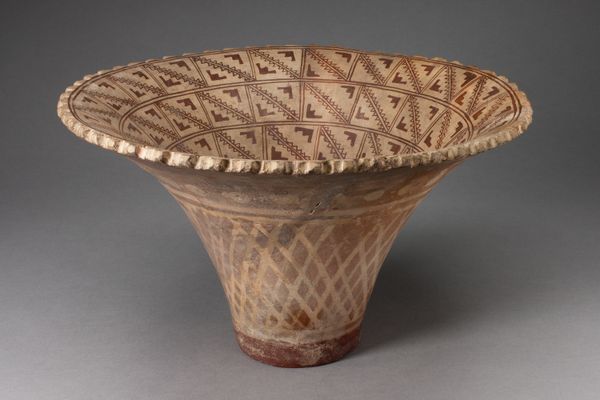This bowl, of unknown origin, is made of earthenware and covered in a lead glaze. While we don't know who made it, we can appreciate the ways in which its material influences its appearance. The earthenware gives the bowl a sense of earthy weight, its porous texture revealed beneath the glossy glaze. This glaze, made with lead, transforms the humble clay into a vibrant, functional object. The process of applying the glaze and firing the bowl in a kiln would have been crucial to achieving its final aesthetic. Note the rhythmic pattern of circles and the delicate, triangular cut-outs along the rim. These details suggest a skilled artisan, one familiar with both the practical and decorative aspects of pottery. The creation of this bowl speaks to the wider social issues of labor and skill. It's a reminder that everyday objects often carry within them a wealth of cultural and artistic heritage.