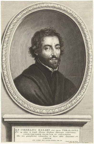 Editor: This is Eduard Kretzschmar's portrait of Thomas Howard, Duke of Norfolk, after a painting by Van Dyck. It's striking how the engraver captured the sitter's serious expression. What symbols do you recognize in this image, and what do they tell us? Curator: Indeed. Notice the elaborate medal, likely an emblem of office or membership in a society. Such symbols reinforced the sitter's identity, anchoring him within specific social and cultural narratives. What emotions are conveyed through these symbols? Editor: I see pride and authority, but also perhaps a hint of the burden of responsibility. Curator: Precisely. And the Van Dyck source adds another layer, linking Howard to a tradition of aristocratic portraiture, reinforcing his lineage and place in history. A powerful visual statement! Editor: That makes me see the portrait as a conscious construction of identity. Thanks!