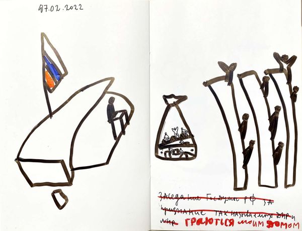 This untitled piece by Alevtyna Kakhidze uses simple materials and off-the-cuff mark-making to create a really touching image. The childlike aesthetic is deceptive because this work tackles some big subjects. The artist’s direct, diaristic approach is revealed in the notebook format and the way she applies coloured pencil to paper, filling in areas of colour with quick, directional strokes. This approach perfectly matches the intimacy of the subject matter. Each page is like a little stage for a thought experiment. What does it mean when Kakhidze declares, ‘My country was with no war, sorry you missed it,’ daubed on a heart shaped tag? That the artist chooses to employ dark humour in this piece reminds me of the graphic novelist, Alison Bechdel, and her ability to navigate complex familial relationships with frankness and wit. Art's capacity to deal with multiple perspectives and meanings simultaneously, I think, is what makes it so powerful.