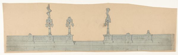 Curator: Looking at this architectural sketch, one gets a real sense of a classical past being re-imagined for the spectacle of the Paris Opéra. Editor: There’s an appealing roughness to it. The pencil on paper reveals a certain…tentativeness, despite its scale, hinting at the raw labor behind stagecraft. Curator: Exactly! What we see here is Eugène Cicéri’s "Design for a Stage Set at the Opéra, Paris," created sometime between 1830 and 1890. He was a leading designer, whose work shaped how the 19th century envisioned historical settings. It’s now held at the Metropolitan Museum of Art. Editor: The lack of precision also makes it intriguing; not quite a finished drawing, it’s almost like an unfinished structure exposing how something grandiose starts so humbly—graphite and paper—before labor and set hands transform this to what appears to the eye. Curator: True. The cityscape presented isn't a faithful rendering, but rather an idealized backdrop meant to evoke the grandeur and historical weight associated with operatic narratives. Think about the audiences; this aesthetic tied directly to aspirations of high culture within Parisian society. Editor: Did Cicéri’s design influence how those aspirations trickled down into mass production? Perhaps even influencing set design beyond just opera? Curator: Absolutely. His atelier system facilitated mass production, influencing not only theatre, but also popular entertainments and even urban design itself, establishing visual standards. Editor: Considering how the visual arts inform design—including what one encounters on the street—seeing Cicéri's process is pretty illuminating. Curator: It really showcases how closely entwined the dreams of an era are to the stage sets that framed them. Editor: Indeed! One gets an acute understanding of craft versus illusion here, that shifts the entire frame of our conversation.