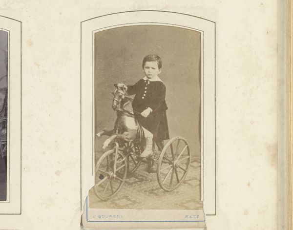 This is a photograph by Albert Lüssow, portraying Matthieu van Oosterzee on a tricycle. Though we don’t know the exact date, the photographic print is a window into a fascinating moment, capturing an early mode of transportation, one which represents both industrial advancements and high social status. The tricycle itself is a marvel of fabrication, the metal components meticulously shaped and assembled. The spoked wheels, solid tires, and complex gearing bear witness to a skilled labor force, a testament to the burgeoning technologies of the industrial age. The photograph, in turn, made accessible images that were once reserved for the upper classes. However, the photograph also raises questions about labor and class. Consider the labor required to produce such a machine, the social implications of owning one, and the act of photographing it. This artwork embodies a pivotal moment where industrial production, social aspiration, and technological innovation intersect. It bridges the gap between fine art and everyday life, inviting us to reflect on the relationship between materials, making, and the broader context in which they exist.