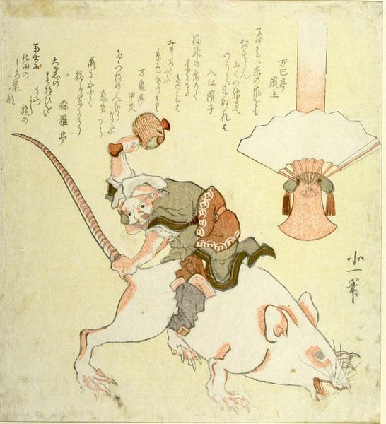 Curator: This woodblock print, attributed to Utagawa Yoshiiku, is titled "True Life Picture of a Fierce Tiger and Portrait of a Woman Above." What's your immediate take? Editor: It’s unsettling! That tiger looks like it's in mid-roar, and the woman’s portrait above feels completely detached from the scene below, creating an uneasy juxtaposition. Curator: The placement is certainly unusual. Utagawa Yoshiiku was working in a period of vast cultural change, and I see this work reflecting that era's fascination with, and perhaps misunderstanding of, Western imagery and its relationship to traditional Japanese subjects. Editor: It’s the disjunction that speaks to me – the almost comical Western portrait positioned above the brutal realism of the tiger. It highlights the exoticization of both cultures, doesn’t it? The print seems to question the very notion of a singular, coherent identity, both personal and national. Curator: Indeed, the print leaves us pondering the complex intersections of art, identity, and the power dynamics inherent in cultural exchange. Editor: Absolutely, a powerful glimpse into a world grappling with shifting perspectives.