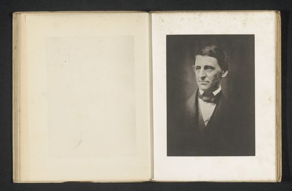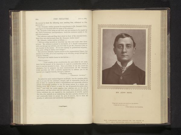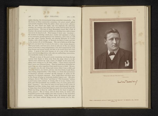 This photographic portrait of Sydney Brough, an actor, by Alfred Ellis, presents a study in monochrome tonality, capturing the sitter’s likeness within a structured composition. The play of light and shadow models his face, giving it depth, while the rectangular frame provides a sharp contrast to the soft gradations within the image. The portrait is structured around Brough’s formal attire—a dark suit, crisp white shirt, and bowtie—all elements that frame his face and direct the gaze. The composition is classically arranged, emphasizing symmetry and balance. The image's power lies in its formal constraints, which paradoxically enable a detailed exploration of character and representation. The restricted palette encourages a focus on texture and form. This piece is not merely a record but an active construction of identity within the visual and cultural codes of its time.