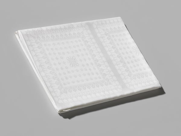 This linen napkin with a ‘pellenpatroon’, or scale pattern, was woven by Ch. Stoop & Cie. Napkins like this one speak to the complex dynamics of domestic labor and social class. They were often used in households where maintaining a polished image was paramount. In that setting, the labor of maintaining these pristine items often fell to women and domestic servants, whose work was essential but often unacknowledged. The whiteness of the linen becomes a symbol of cleanliness and purity, yet it conceals the labor required to achieve and maintain that appearance. The geometric pattern, meticulously woven, adds another layer of meaning. It suggests order and control, mirroring the structured social hierarchies of the time. But, it also offers an aesthetic pleasure. It invites us to consider how everyday objects can embody both beauty and the subtle traces of social inequalities.