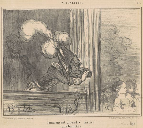 This print, made in 1870 by Johan Michaël Schmidt Crans, captures a moment of irony within the hallowed halls where Rembrandt’s “Night Watch” hangs. The image, rendered in ink, offers a pointed commentary on the state of cultural heritage. In the scene, we see museum attendants tending to a smoking stove, oblivious to the damage their actions inflict upon the masterpiece looming behind them. Here, Crans critiques the perceived negligence in caring for national treasures, literally obscuring the legacy of Dutch art with a cloud of smoke. This satirical portrayal speaks volumes about the cultural priorities of the time, questioning whether the appreciation of art truly aligned with its preservation. The print invites us to consider the value we place on art and the stories it tells about our collective identity, asking who is responsible for safeguarding cultural memory. It is a poignant reflection on the tensions between present needs and the preservation of the past.