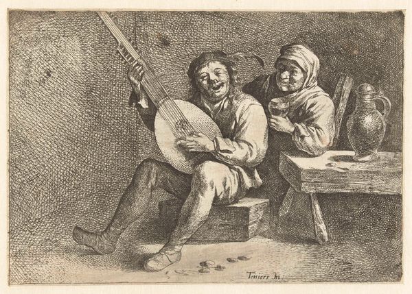 Jacob Gole created this engraving, “Two Musicians,” in the Netherlands. Notice how the composition divides the space, setting two figures against a dark, undefined backdrop. The musician on the right, perched precariously on a stool, strums his instrument with fervor. The lines etched here are light, capturing a sense of immediate, joyful sound. In contrast, the figure to the left embodies a different rhythm. His stance is less certain, his movements suggested through heavier, more deliberate lines. One has the sense he is out of step. Consider how Gole uses these differing qualities of line and form to suggest contrasting notions of harmony and discord. Is he inviting us to consider a new way of thinking about space, perception, power or representation? Perhaps Gole challenges us to question what truly constitutes harmony. He offers a space where dissonance might find its own, unexpected resonance.
