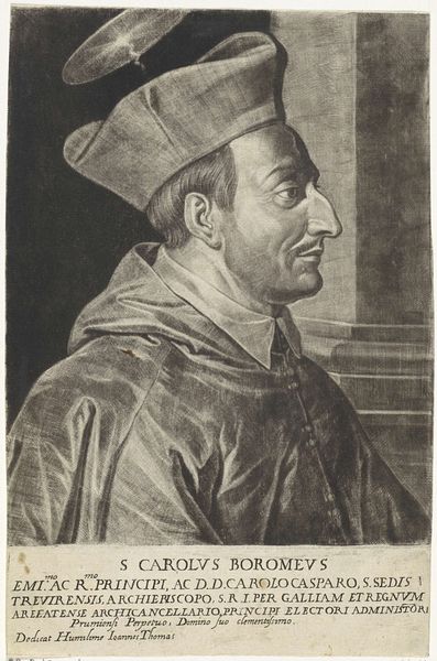 Curator: Here at the Rijksmuseum, we have a rather fascinating engraving titled "Portret van de Italiaanse kardinaal Ascanio Maria Sforza Visconti". It’s attributed to Frans van den Wijngaerde and believed to have been created sometime between 1636 and 1679. Editor: My first thought? Austere. Almost…clinical? But the texture, the way the lines create depth in that robe, pulls you in despite its coldness. Like peering through time. Curator: Indeed. It's the precision of the line engraving that dictates much of its effect. Look at the controlled use of hatching and cross-hatching. Notice how the density of these lines shapes the contours of the Cardinal's face, giving weight and volume to his features. The baroque sensibility is clearly visible in the theatrical treatment of the robes. Editor: You're right. There's an almost tangible quality to the fabric. And the way it falls...it whispers of power, doesn't it? The choice of engraving seems deliberate—almost a translation of flesh and blood into pure intellect, rendered in the sharpest monochrome. I can't help feeling like I'm analyzing a power structure when looking at it. Curator: Well, the process of engraving, its reliance on skill and repetitive labor, elevates the image from a simple portrait to a manufactured object, almost industrially. Editor: But is it so sterile? I think the artist's hand still makes itself known. Notice that slight softening around the eyes. There’s something human lurking behind the deliberate technique. A bit subversive perhaps? Curator: Possibly. Considering that prints such as this were reproducible, it allowed for dissemination of power—or at least its image—far beyond the elite circles. Editor: Hmm. Maybe it's the engraving style itself that gives it this...eternal quality. The subject might be a man but its method offers an analysis on the society that this Cardinal has inhabited. Curator: It's a reminder of how materials, methods, and societal forces intertwine to create a historical object, or, to create an aesthetic impact that extends even to us today. Editor: A thought-provoking collision of spirit and technique. The ghost in the machine, perhaps?