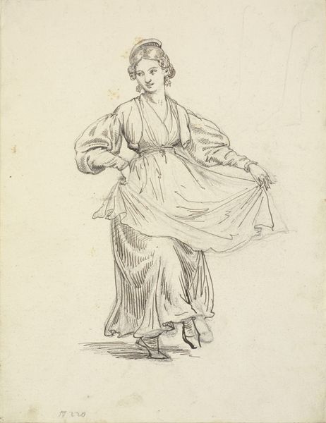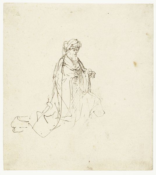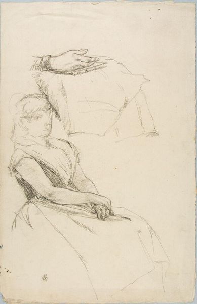 Curator: This drawing, housed here at the Harvard Art Museums, is entitled "Figure of a Woman Seated with her Back Turned," a study by Paolo Veronese for his Eritrean Sybil. Editor: There’s a strange, almost haunting beauty to the line work, a vulnerable grace in the way her back is turned. Curator: Veronese, born in 1528, was a master of the Venetian Renaissance, celebrated for his use of color and grand theatrical compositions. Editor: You know, it’s interesting to see this preparatory sketch. The looseness of the lines, the visible searching… it makes the eventual finished work feel somehow less inevitable, more human. Curator: The “Sybil” paintings were often commissioned by wealthy patrons for display in their villas, reflecting the era’s interest in classical antiquity. Editor: Funny, though—the sketch feels more modern than the finished piece probably did. The way he captures the fall of the fabric, the curve of her spine… it’s almost impressionistic. Curator: Indeed. The study gives insight into his process, the steps he took to achieve the polished effect. Editor: It reveals the artist in process, experimenting. What a treat to witness a master at work.