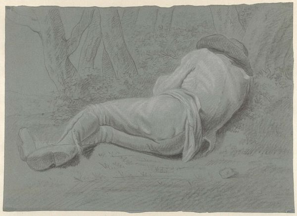Editor: Here we have Charles Bargue’s "Two Studies of a Man at Prayer," created sometime in the 19th century. It's a simple pencil drawing, but the figures are so evocative. What symbols or meanings do you find in this work? Curator: The prayer pose itself is a potent symbol, transcending specific religions yet deeply rooted in faith. The act of prostration signifies humility, submission, and a connection to something greater. How does the artist’s choice to depict two figures affect your understanding? Editor: I think it emphasizes the universality of prayer, maybe? Or the individual's personal journey even within a shared ritual. Curator: Precisely. Bargue, working in a time of burgeoning Orientalism, may have been drawn to the visual language of prayer as a signifier of the "Other," but the enduring power of the image lies in its resonance with human longing and devotion. The empty background amplifies this, doesn't it? Editor: It really does. I hadn't thought about the Orientalist context before. Curator: Considering the cultural memory embedded in simple gestures unveils so much. Editor: I'll definitely look at similar works differently now.
